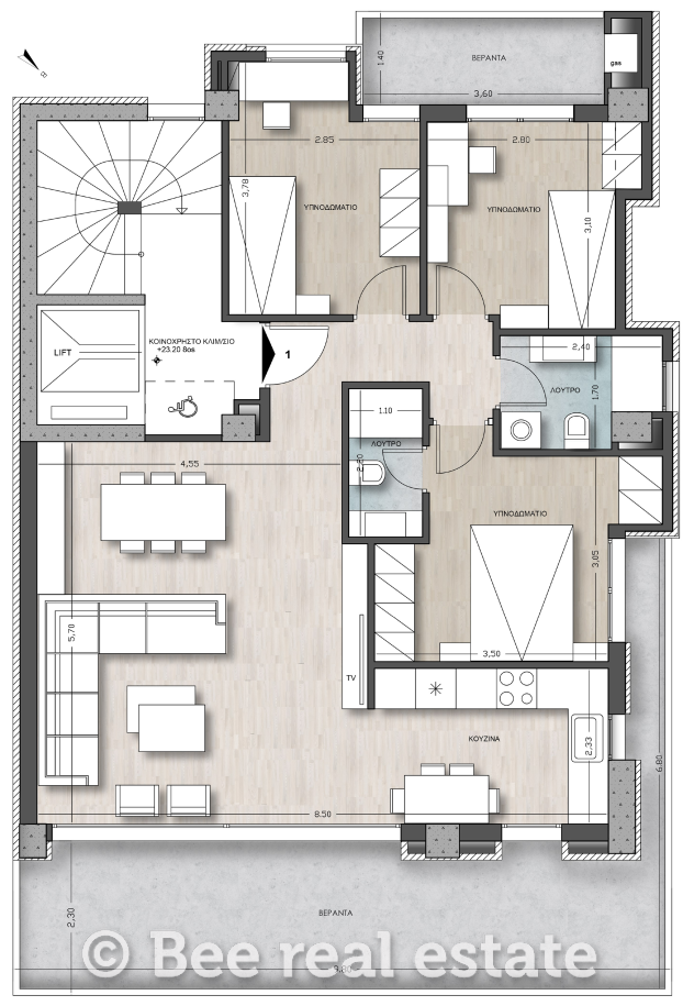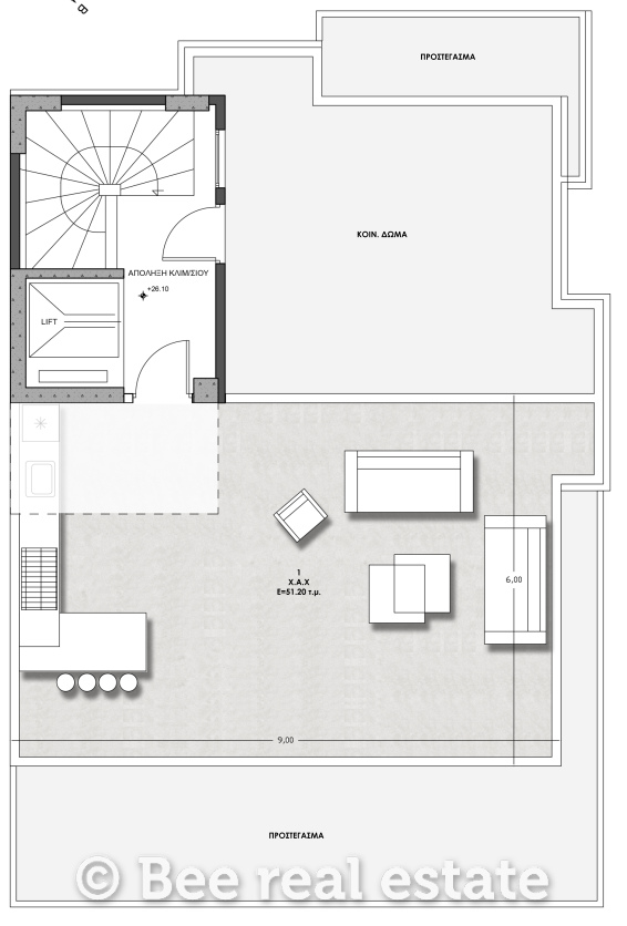 Apartament luksoz i ri ndertuar ne shitje ne Byzantio, Kalamaria. Ndodhet ne katin e 8-te, ka nje siperfaqe totale prej 116m2 (92m2 neto), me perdorim shtese te kulmit (kati 9) prej 52m2. Dorëzimi i tij pritet në fund të vitit 2027, dhe ka: