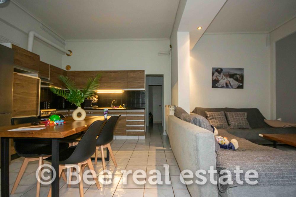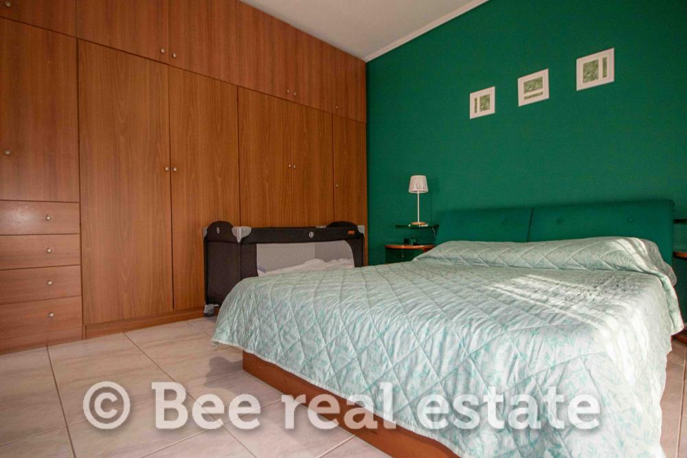 β)Διαμέρισμα 1ου ορόφου 92 τ.μ.. Αποτελείται από 2 υπνοδωμάτια, σαλονότραπεζαρία με τζάκι και η κουζίνα διαχωρίζεται με πάγκο, μεγάλο μπάνιο, χωλ,πατάρι και μπαλκόνια πρόσοψης και ακαλύπτου. Τα κουφώματα είναι αλουμινίου με διπλά τζάμια και τα δάπεδα είναι από πλακάκι.Η θέρμανση είναι αυτόνομη αερίου με μετρητή και η ψύξη του πραγματοποιείται με 2 κλιματιστικά.Ανακαινισμένο το 2015.