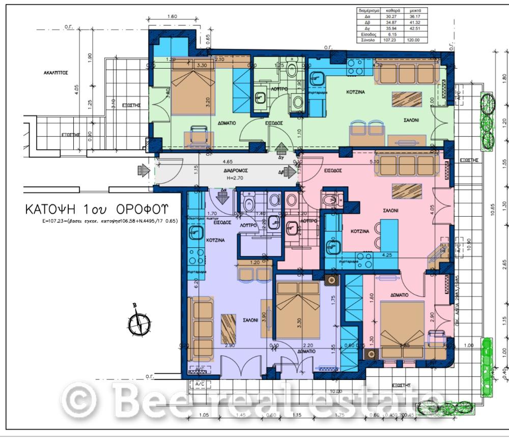 Διαμέρισμα Δβ (κόκκινο): 41,32 τ.μ. – 134.000€ Διαμέρισμα Δγ (πράσινο): 42,51 τ.μ. – 135.000€ - Μπροστινά & πολύ φωτεινά