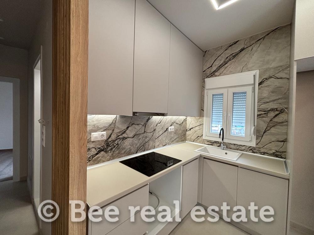 The apartment is completely renovated with quality materials and modern design. It consists of a living room, kitchen, two rooms and a bathroom. It is front and corner, sunny and with unlimited views. Finally, it has individual gas heating, air conditioners, lamps, wardrobes and kitchen appliances.