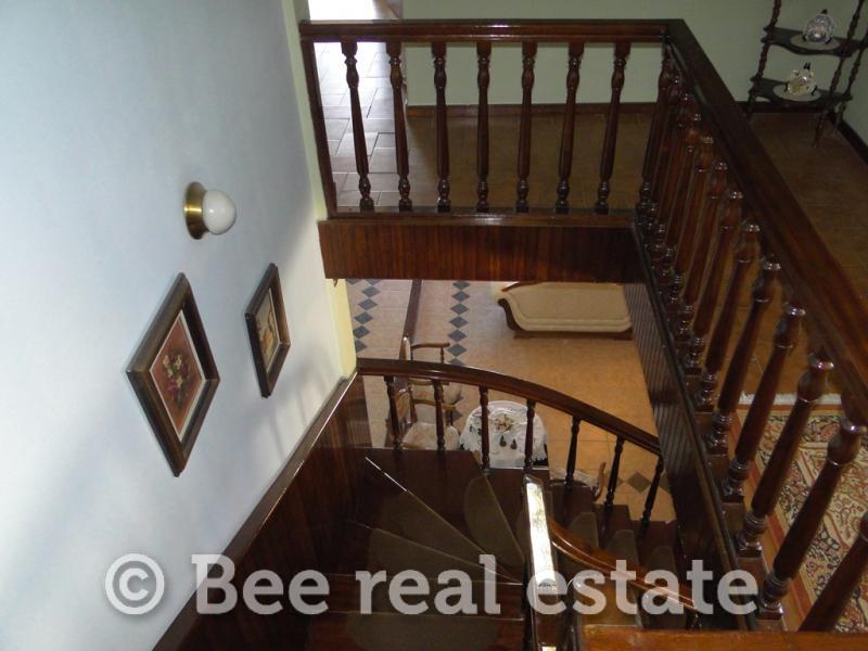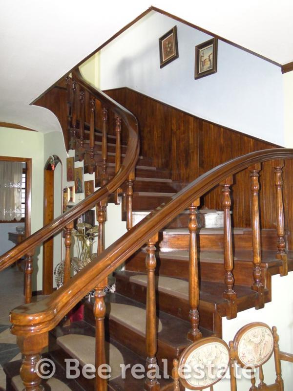 Μέσω μίας πανέμορφης χειροποίητης εσωτερικής σκάλας με πλατιά σκαλοπάτια οδηγούμαστε στο δεύτερο επίπεδο της κατοικίας.