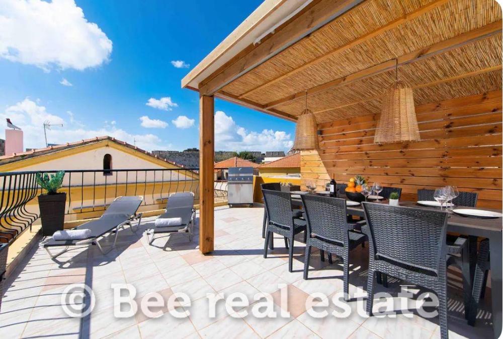 Αυτό το όμορφο σπίτι διαθέτει 3 υπνοδωμάτια καθώς και μια αίθουσα κινηματογράφου που μπορεί να μετατραπεί σε ένα επιπλέον υπνοδωμάτιο εάν χρειαστεί. 2 μπάνια και μια υπέροχη βεράντα στον τελευταίο όροφο με εκπληκτική θέα στη θάλασσα και την παλιά πόλη.