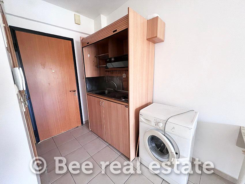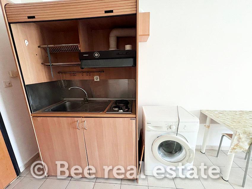 Στην τιμή του ενοικίου συμπεριλαμβάνονται οι ηλεκτρικές συσκευές των φωτογραφιών (ψυγείο, ηλεκτρική εστία και πλυντήριο ρούχων), όπως και όλα τα βασικά έπιπλα (κρεβάτι, γραφείο, τραπέζι και καρέκλες).