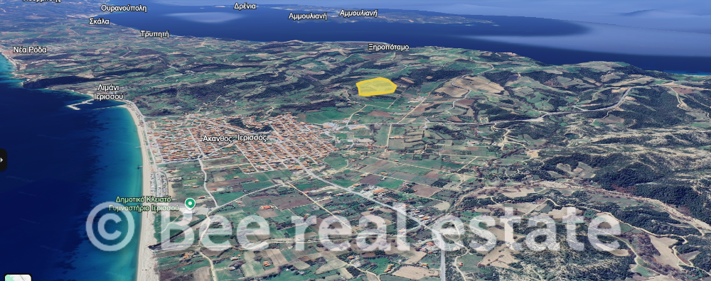 Discover the opportunity to create your personal paradise, very close to the beautiful town of Ierissos, Halkidiki. For sale is a unique agricultural plot outside the city plan with an area of 6.126 square meters (over 6 stremmata).