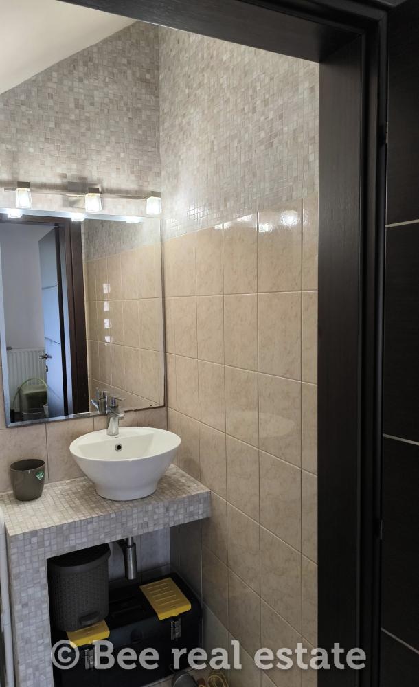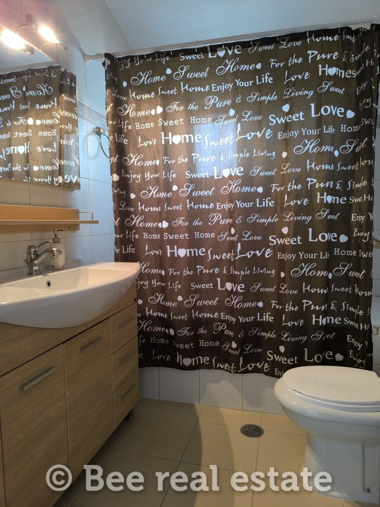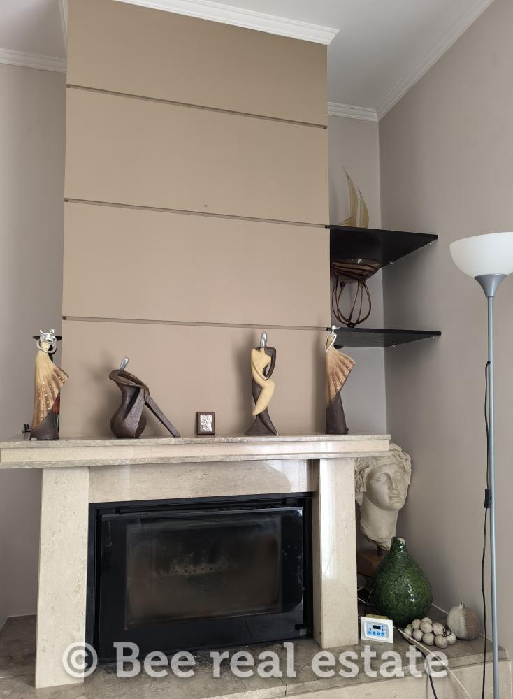 On the ground floor, you will find a bright open-plan layout that includes a living room, dining area, and fully equipped kitchen, while the energy-efficient fireplace adds warmth and style to the space during the winter months. There is also a WC on this level, perfect for daily use and for guests.