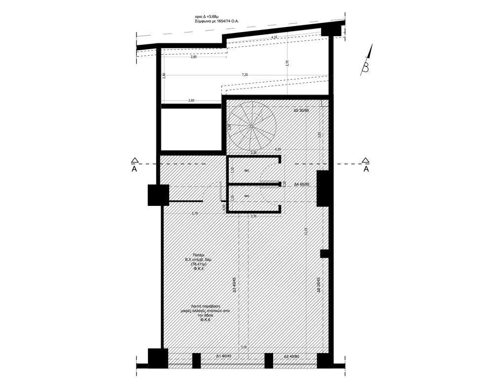 Το κατάστημα αποτελείται από ισόγειο 353,37 τμ. (300 τετραγωνικά μέτρα χώρο κύριας χρήσης και 53,37τ.μ. βοηθητικής χρήσης, υπόγειο βοηθητικό χώρο 360,63τ.μ. και πατάρι 78,41τ.μ..