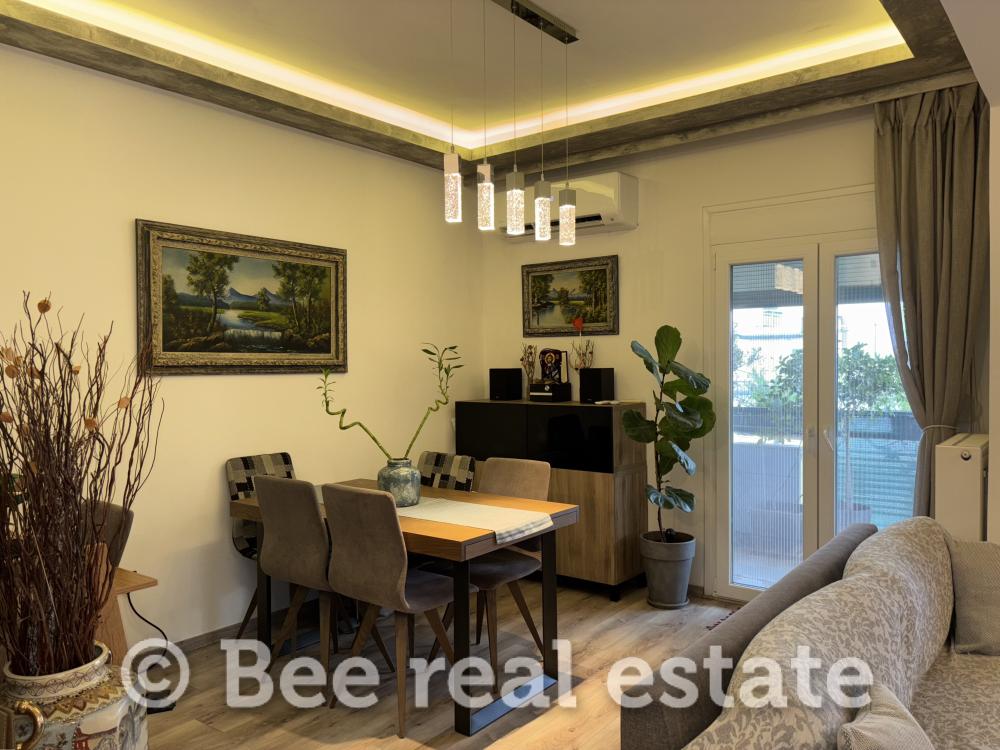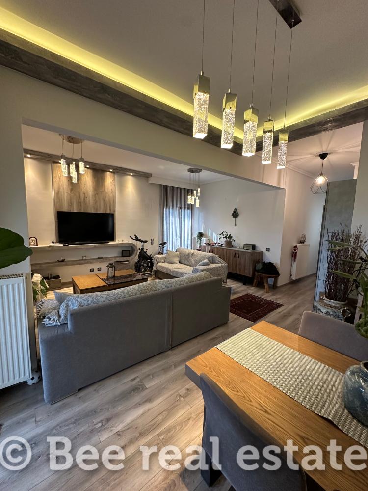 It should be noted that the owners have done a total renovation, very careful and qualitative. External frames of high thermal insulation have been installed and special waterproofing and heat protection have been made on both the facade of the apartment and the terrace, as it is on the top floor. There is individual gas heating, solar water heater and three air conditioners. High quality hygiene and kitchen furniture as well as bedroom wardrobes have been installed. And finally some beautiful details and styles complement the modern character of the house.