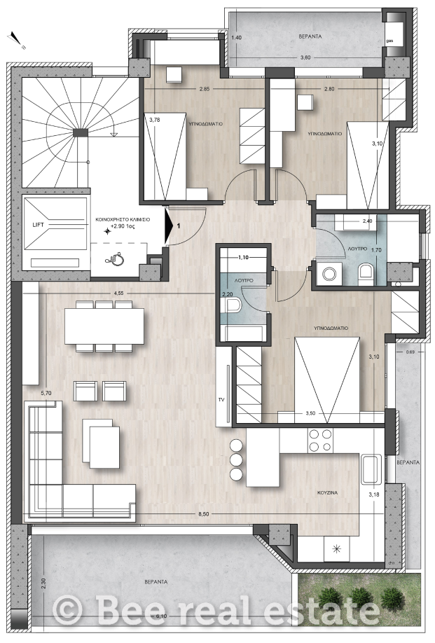 Apartament luksoz i ri ndertuar ne shitje ne Byzantio, Kalamaria. Ndodhet ne katin e 1, ka nje siperfaqe totale prej 118m2 (94m2 neto), dorëzimi i tij pritet në fund të vitit 2027, dhe ka: