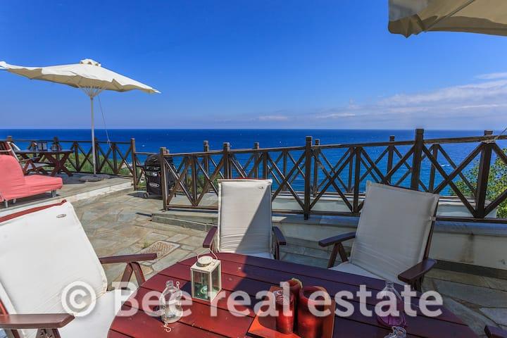 Πωλείται από την Bee Iolkos Real Estate, στον Αη Γιάννη Πηλίου , ακίνητο 125 τ.μ αποτελούμενο από 2 ισόγειες κατοικίες 62.50 τ.μ ,με αίθριο και ημιυπόγειο η κάθε μία , σε συνολική επιφάνεια 240 τ.μ. και πανοραμική θέα όλο το Αιγαίο.Το ακίνητο διαθέτει άνετη αυλή - μπαλκόνι από πέτρα Πηλίου . Κάθε κατοικία αποτελείται από καθιστικό με τζάκι , κουζινα και μπάνιο και εσωτερική σκάλα που οδηγεί σε αίθριο ως κρεβατοκάμαρα. Στο ενα ημιυπόγειο υπάρχει μια κρεβατοκάμαρα και στο άλλο χώρος γυμναστικής. Διαθέτει σύστημα συναγερμού, θέρμανση κλιματισμό, εντοιχισμένες ντουλάπες . Διατίθενται πλήρως εξοπλισμένα τα διαμερίσματα καθώς μπορούν να χρησιμοποιηθούν και επενδυτικά ως τουριστικά καταλύματα . Η θέα είναι μοναδική και 150 μέτρα μόλις από την καταπληκτική παραλία Παπά νερό.