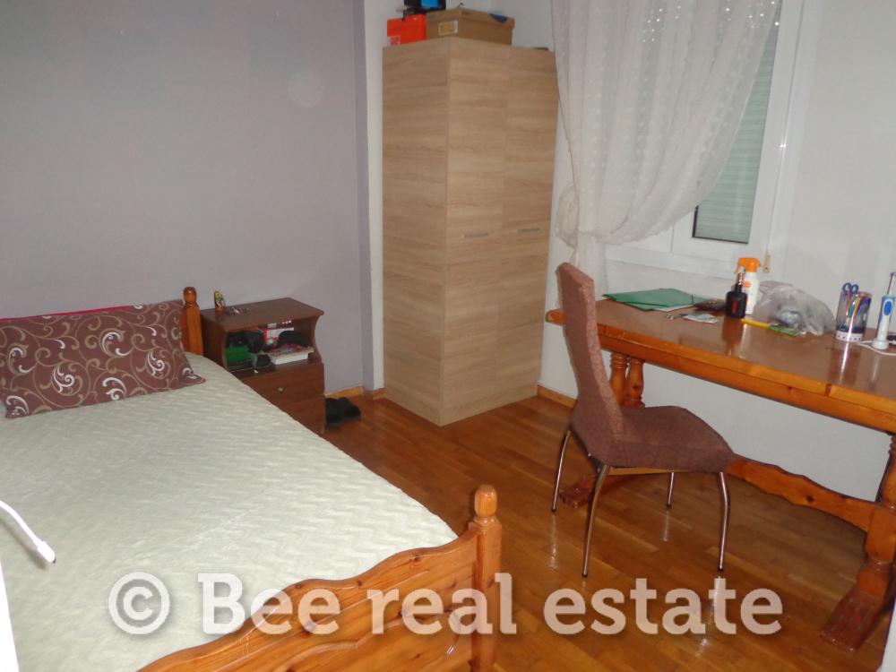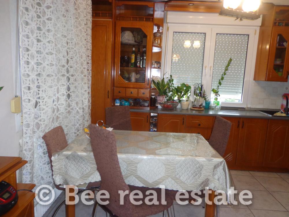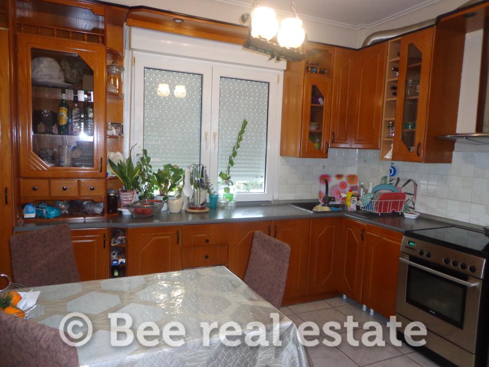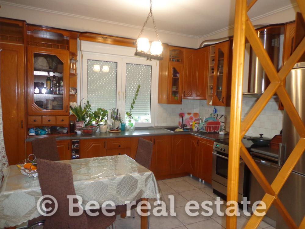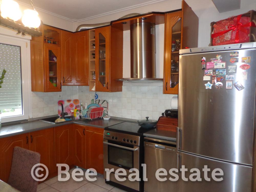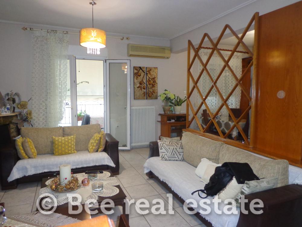 Αποτελείται από τον ενιαίο χώρο του καθιστικού με το γωνιακό τζάκι και την τραπεζαρία που βλέπουν στη μεγάλη μπροστινή βεράντα του διαμερίσματος, από την ημι-ξεχωριστή, ευρύχωρη κουζίνα όπου χωράει τραπέζι φαγητού, από τα τρία υπνοδωμάτια με ντουλάπες και μπαλκονόπορτες που μας βγάζουν στην πίσω βεράντα, από το κυρίως μπάνιο με παράθυρο για φυσικό φωτισμό και εξαερισμό και το w.c. Θερμαίνεται με ατομικό λέβητα Φ/Α και δροσίζεται με κλιματιστικό στο χώρο του καθιστικού. Συνοδεύεται από αποθήκη υπογείου 10τμ.