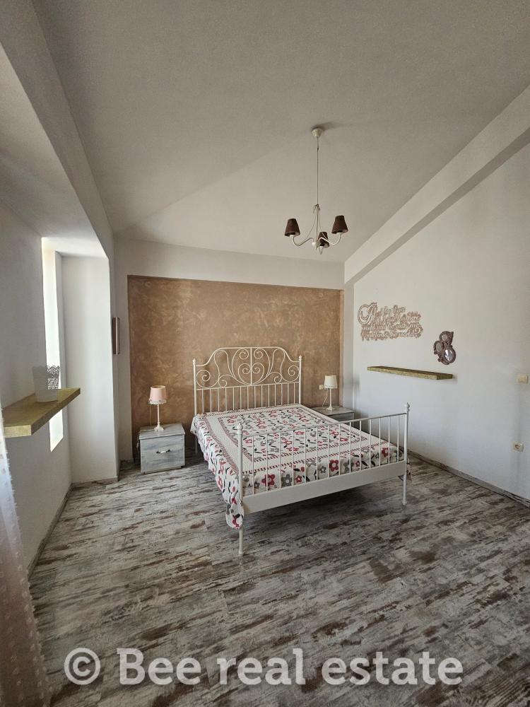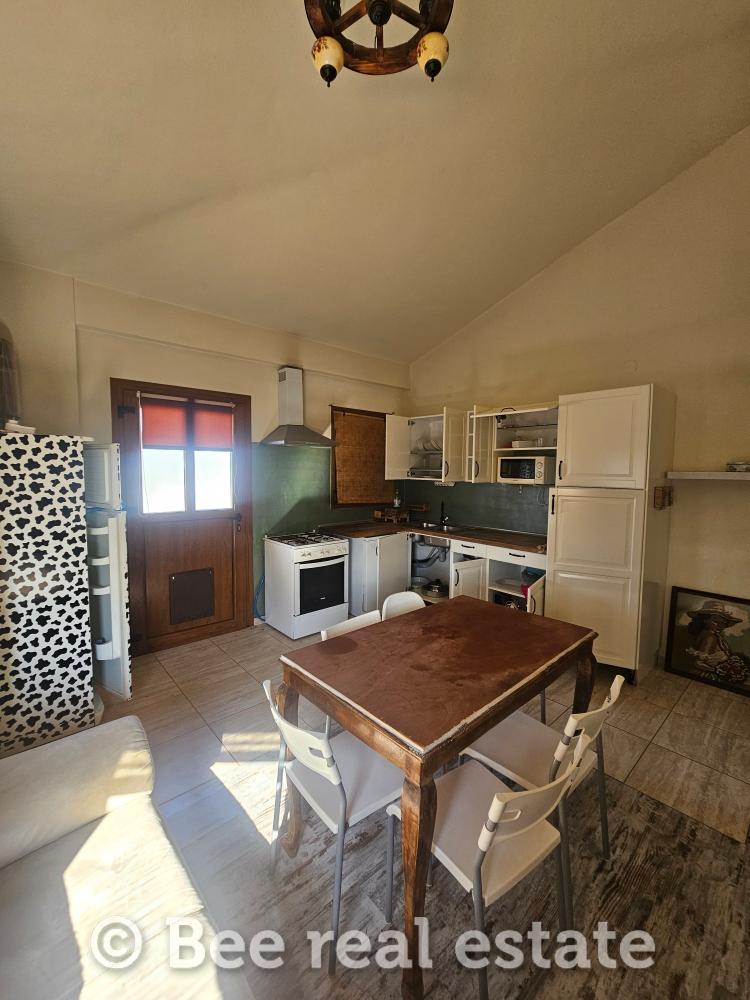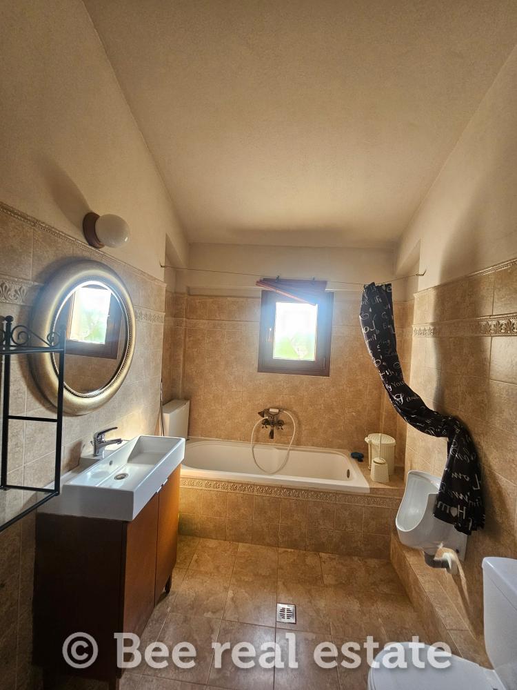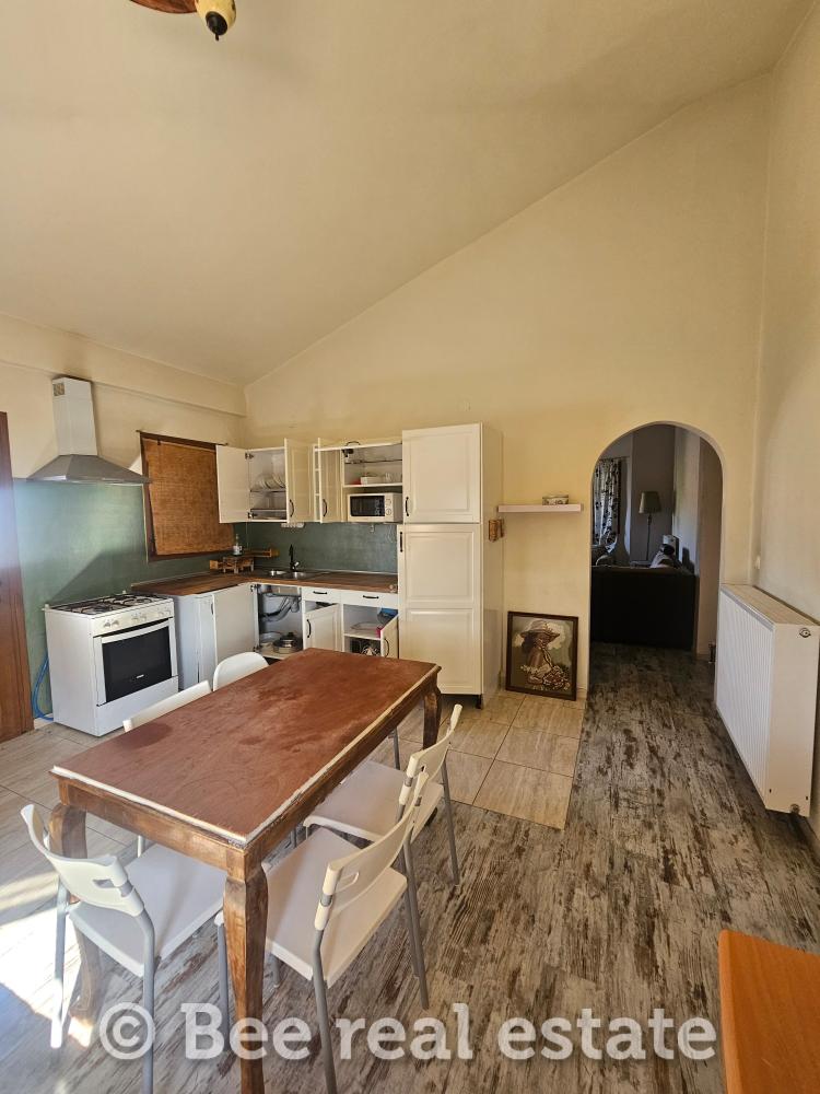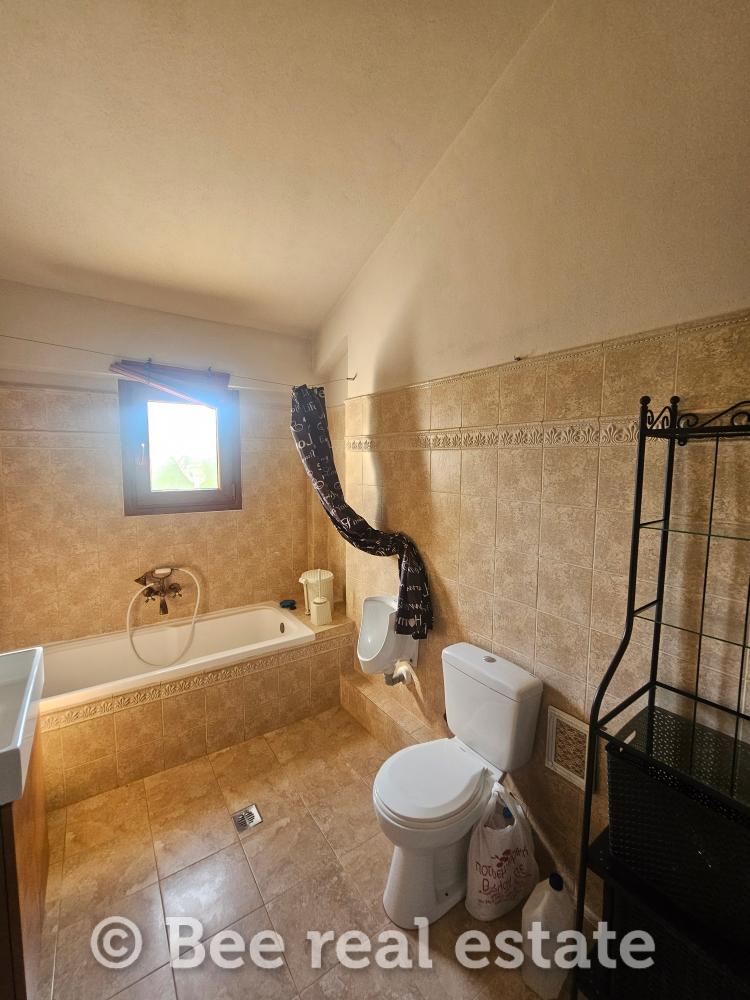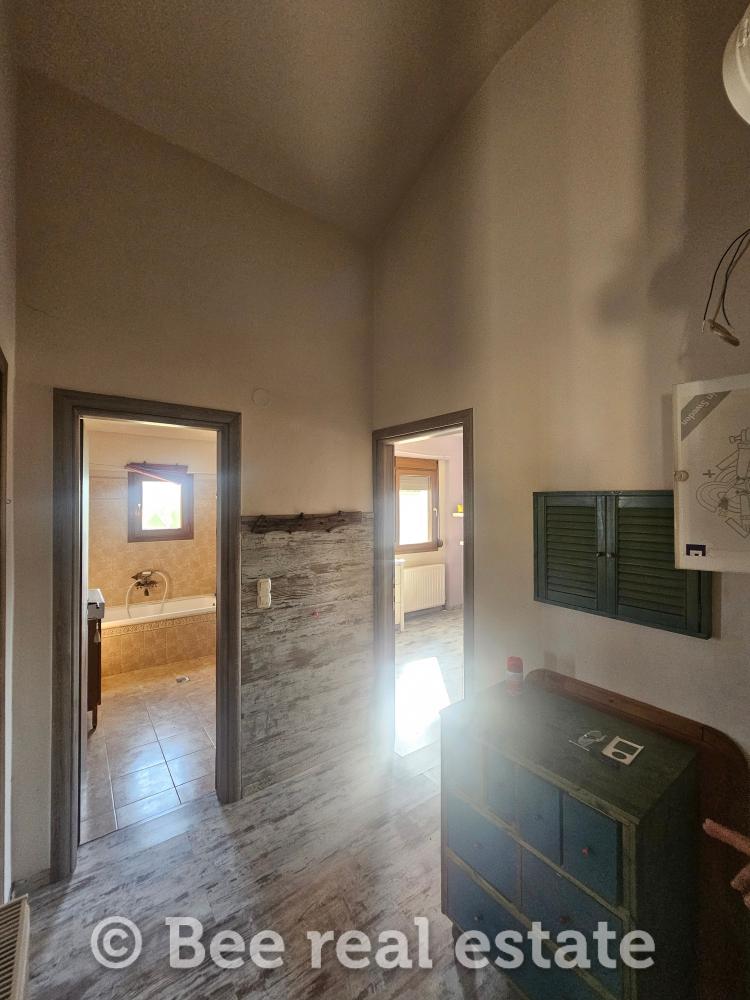 Αποτελείται από το καθιστικό, κουζίνα, δύο υπνοδωμάτια, μπάνιο. Η θέρμανση πραγματοποιείται με Pellet, τα κουφώματα είναι αλουμινίου διπλής υάλωσης. Στο υπόγειο εμβαδού 95,29τ.μ. είναι ο καυστήρας pellet, το w/c και υπάρχει εγκατάσταση για το πλυντήριο ρούχων. Η ποιότητα κατασκευής και υλικών είναι πολύ καλή. Έχει ένα διπλό βόθρο και ένα μονό. Το οικόπεδο είναι περιφραγμένο και υπάρχει δυνατότητα δόμησης και για δεύτερη μονοκατοικία.