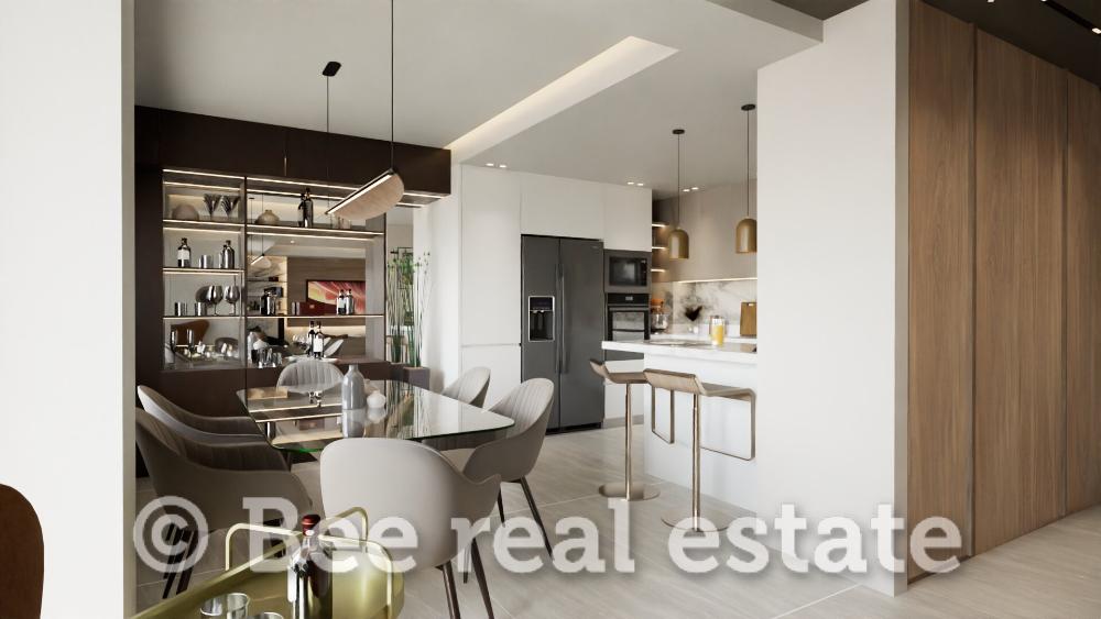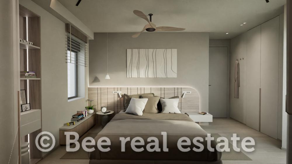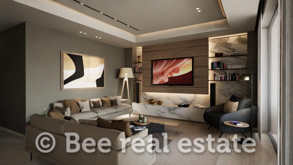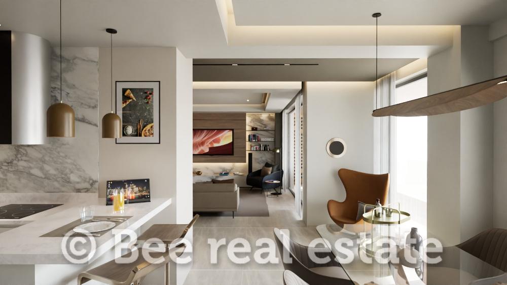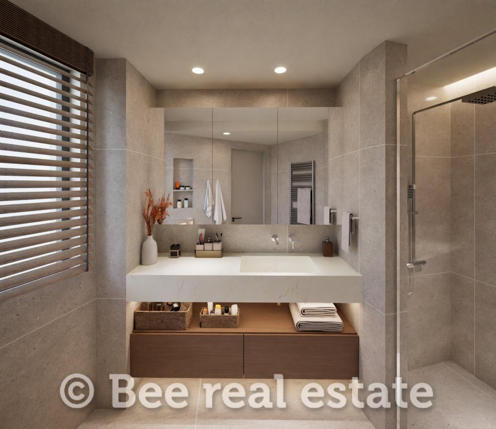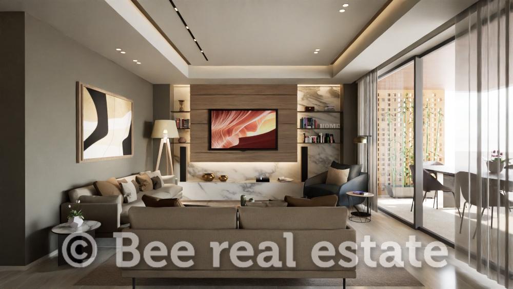 Η καθαρή επιφάνεια του διαμερίσματος είναι 120τμ και μοιράζεται ως εξής: 2 υπνοδωμάτια με μεγάλο μπάνιο, 1 master bedroom με en suite μπάνιο, ευρύχωρο σαλόνι, άνετη κουζίνα με τραπεζαρία, μεγάλα μπαλκόνια 30τμ. Το διαμέρισμα είναι διαμπερές και πολύ φωτεινό με απεριόριστη ανοιχτωσιά. Ο αρχιτεκτονικός σχεδιασμός εστιάζει στο φυσικό φωτισμό και τη λειτουργικότητα, ενώ στις εξωτερικές επιφάνειες χρησιμοποιούνται σύγχρονα υλικά όπως ξύλο, γυαλί και μπετόν, σε αρμονία με τον περιβάλλοντα χώρο. Μεγάλη έμφαση έχει δοθεί επίσης στον ενεργειακό σχεδιασμό των κατοικιών με βασικό κριτήριο την οικονομία και την υψηλή απόδοση.