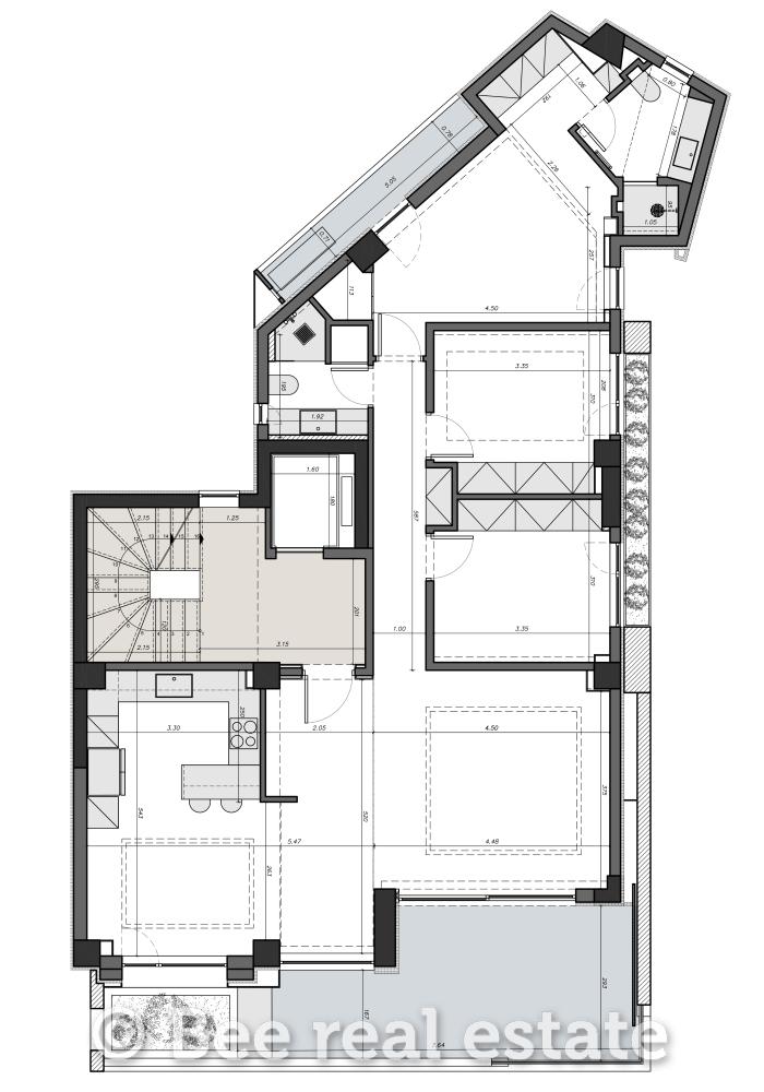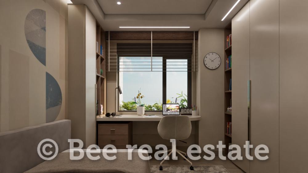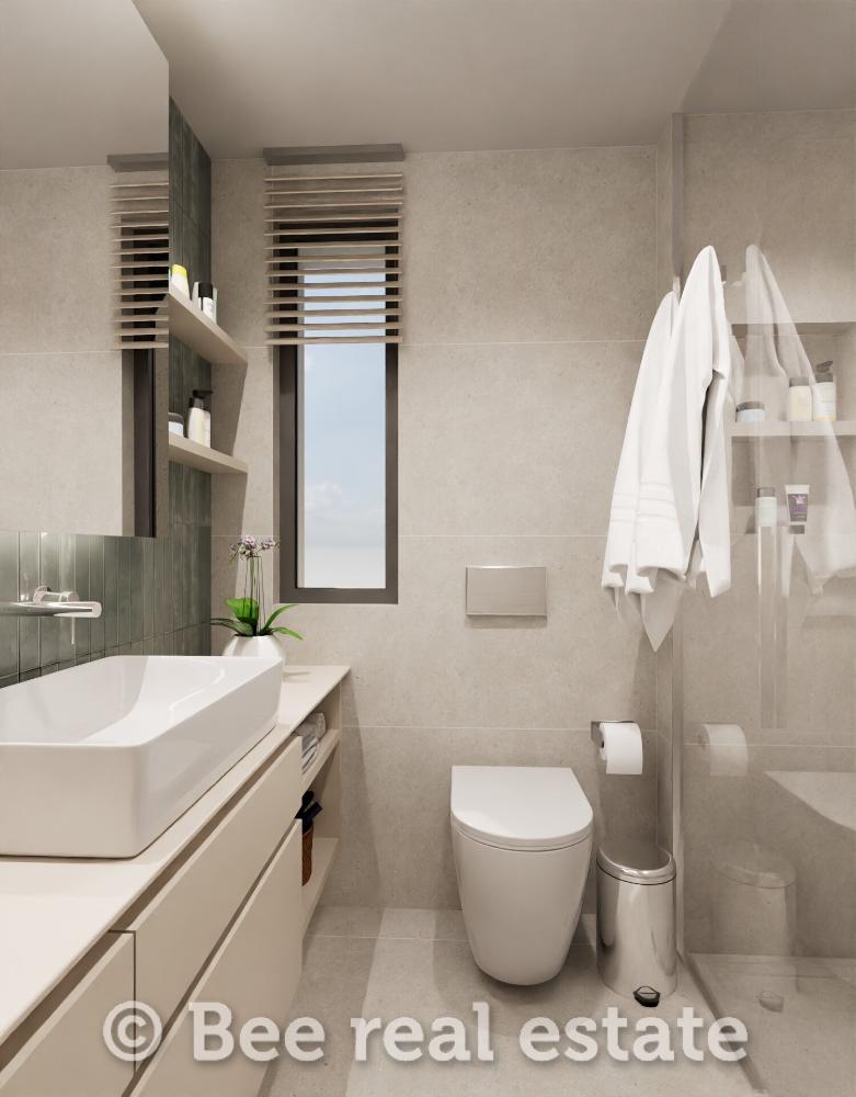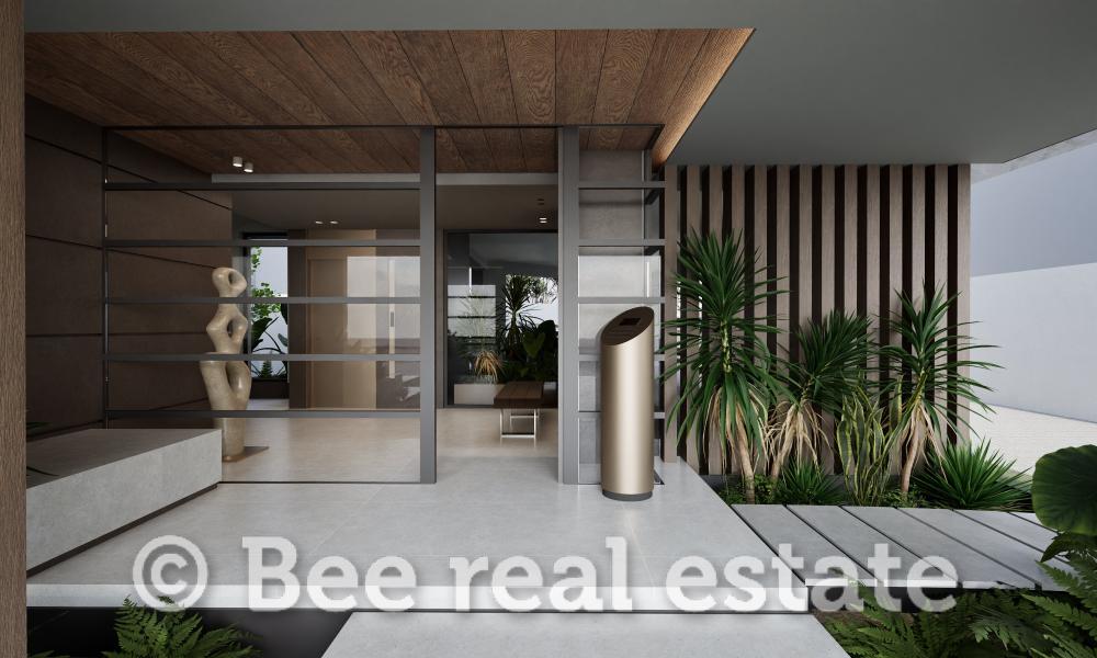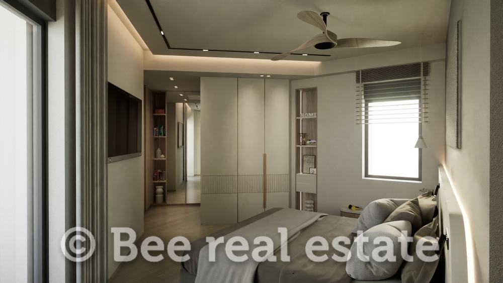Η καθαρή επιφάνεια του διαμερίσματος είναι 120τμ και μοιράζεται ως εξής: 2 υπνοδωμάτια με μεγάλο μπάνιο, 1 master bedroom με en suite μπάνιο, ευρύχωρο σαλόνι, άνετη κουζίνα με τραπεζαρία, μεγάλα μπαλκόνια 30τμ. Το διαμέρισμα είναι διαμπερές και πολύ φωτεινό με απεριόριστη ανοιχτωσιά. Ο αρχιτεκτονικός σχεδιασμός εστιάζει στο φυσικό φωτισμό και τη λειτουργικότητα, ενώ στις εξωτερικές επιφάνειες χρησιμοποιούνται σύγχρονα υλικά όπως ξύλο, γυαλί και μπετόν, σε αρμονία με τον περιβάλλοντα χώρο. Μεγάλη έμφαση έχει δοθεί επίσης στον ενεργειακό σχεδιασμό των κατοικιών με βασικό κριτήριο την οικονομία και την υψηλή απόδοση.