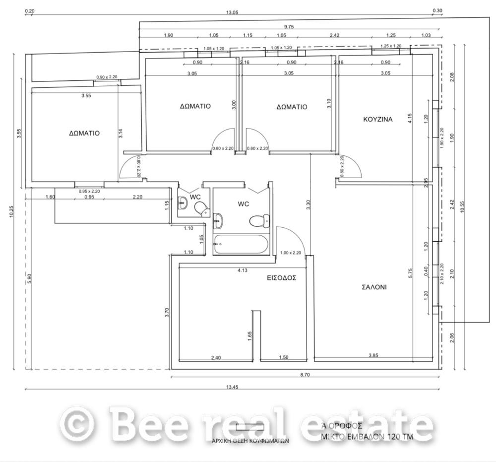 - 3 μεγάλα δωμάτια με ντουλάπες