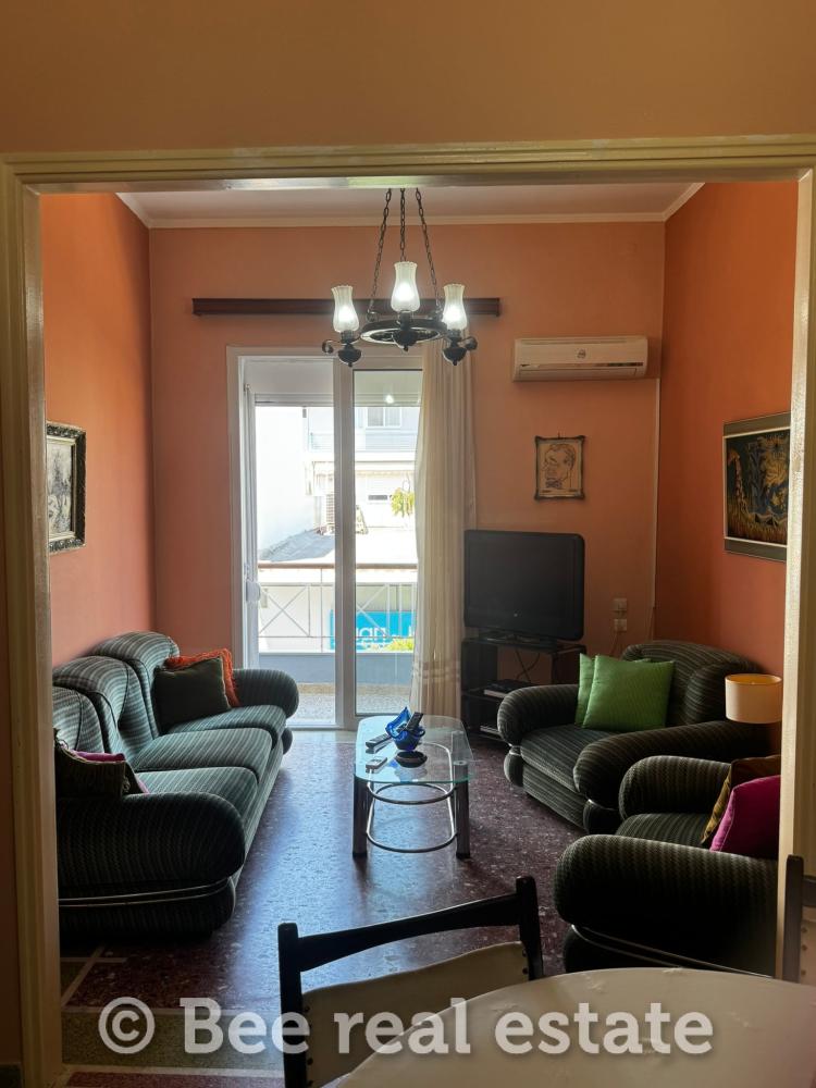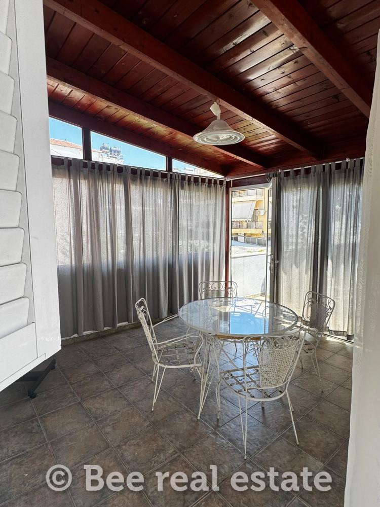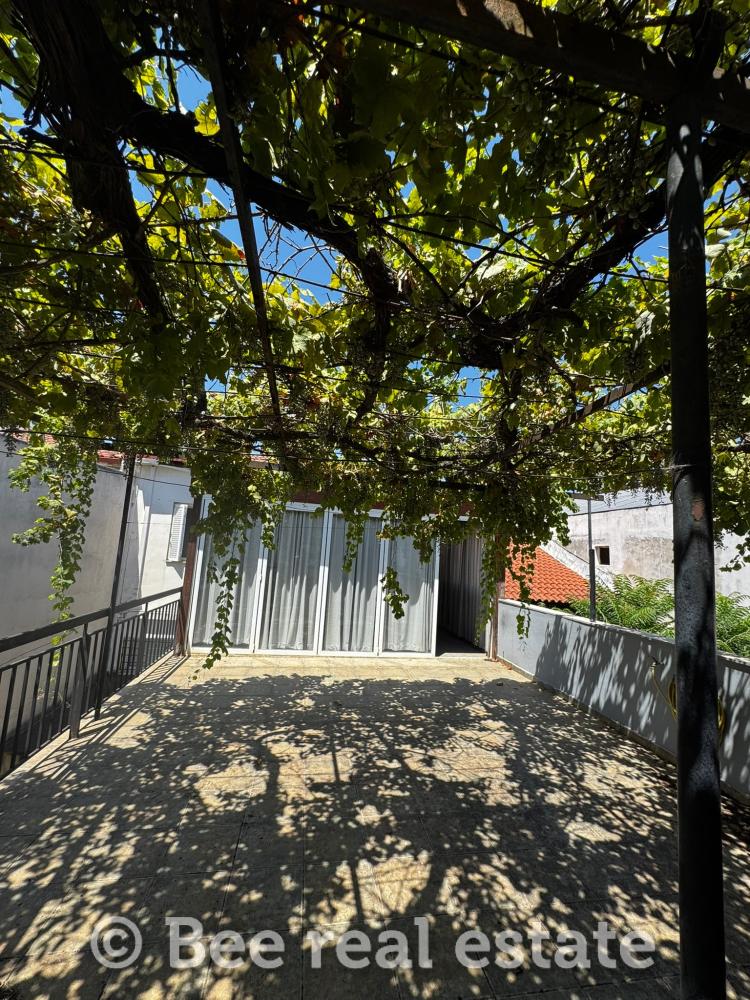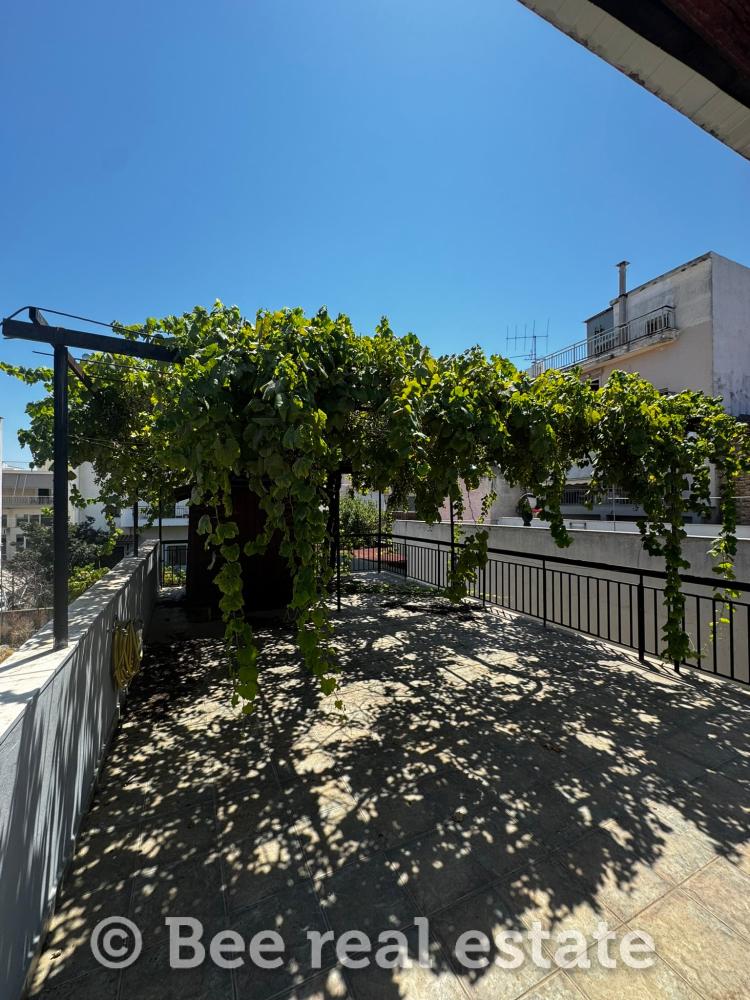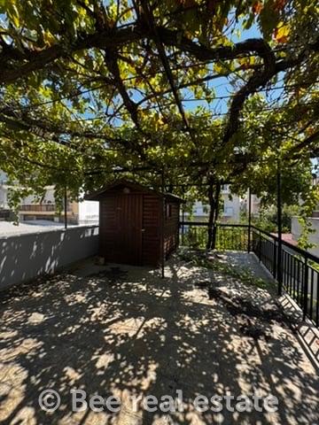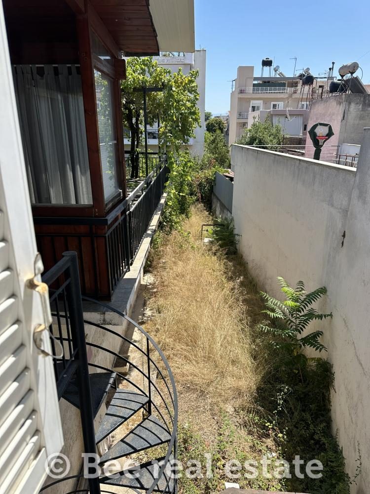 Διαμέρισμα 83 τ.μ. (1ος όροφος): 2 υπνοδωμάτια, μπάνιο, κουζίνα, καθιστικό-τραπεζαρία, πελώρια βεράντα 40 τ.μ. και αίθριο 20 τ.μ.