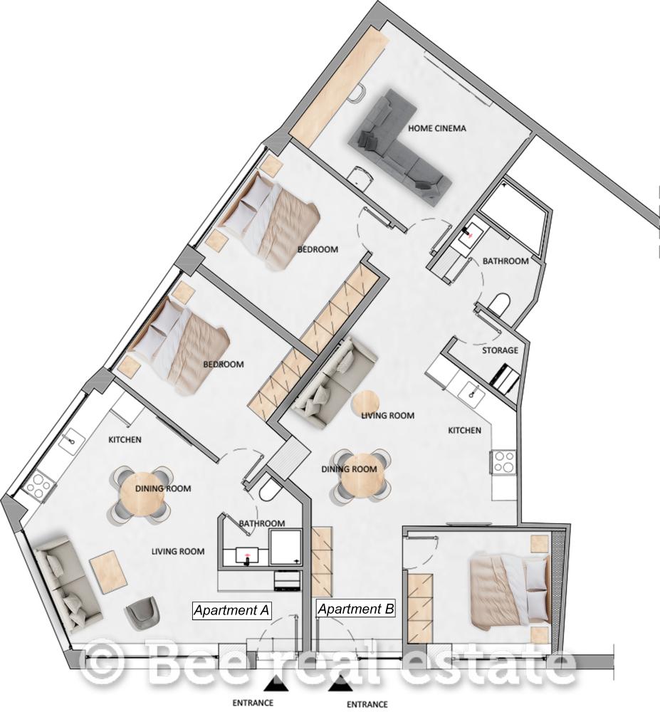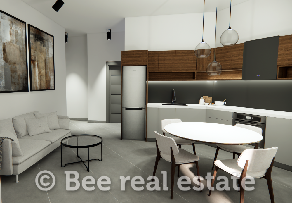 Το διαμέρισμα διαθέτει δύο υπνοδωμάτια, ενιαίο χώρο σαλόνι-κουζίνα, ένα χώρο home cinema, το οποίο μπορεί να γίνει και 3ο υπνοδωμάτιο, επίσης ένα λειτουργικό μπάνιο. Επίσης, έχει αντλία θερμότητας για ψύξη-θέρμανση, αλουμίνια θερμοδιακοπής και θερμοπρόσοψη 10cm. Το διαμέρισμα είναι εξοπλισμένο με ηλεκτρικές συσκευές και έπιπλα.