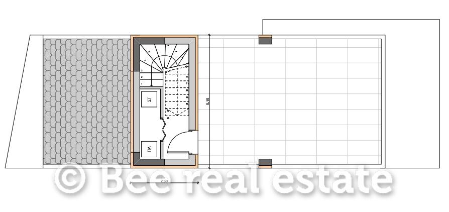 The residence on the ground floor has a large living-dining room, a separate kitchen and a wc.