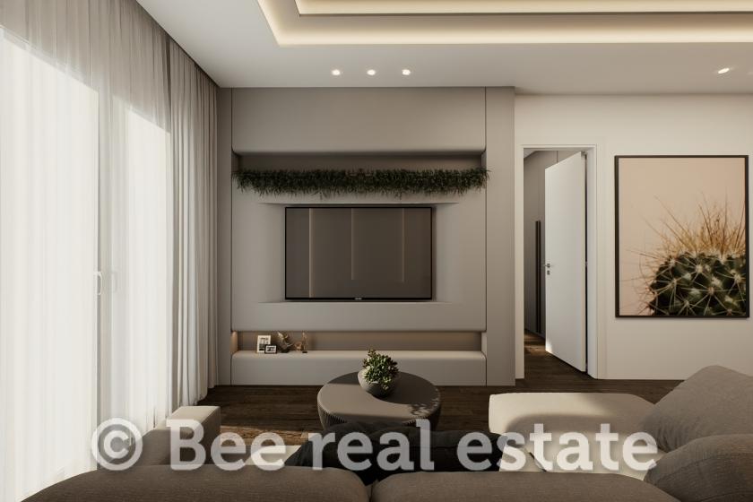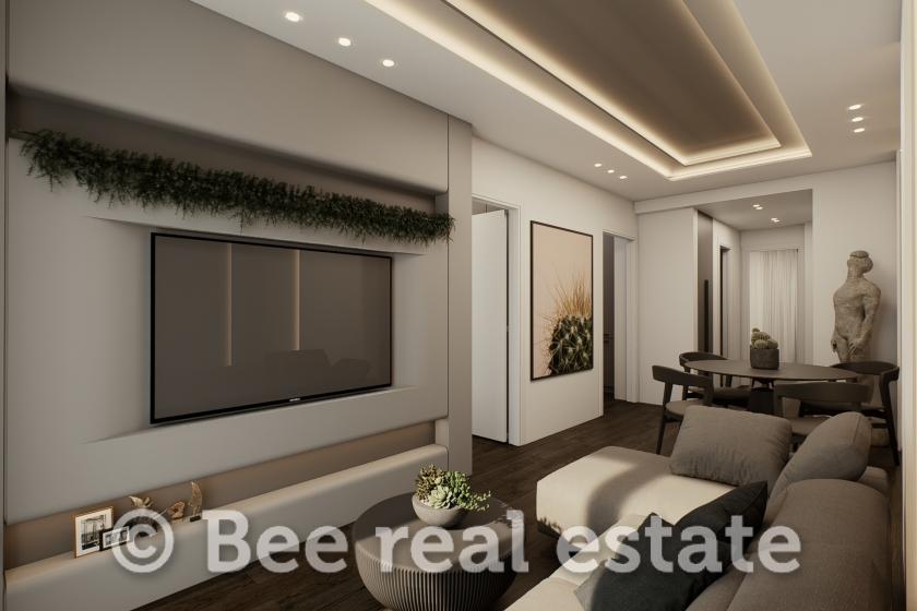 Përbëhet nga një dhomë e madhe ndenjeje përpara me një ballkon të rehatshëm dhe një zonë ngrënieje, një kuzhinë gjysmë e pavarur me dollapë elegant dhe funksional dhe akses në një ballkon anësor të dobishëm, dy dhoma gjumi shumë të rehatshme me gardërobë të mëdhenj dhe akses në një ballkon, një banjë luksoze, një dhomë magazinimi të brendshëm me një vend për lavanderi dhe në fund një korridor i dobishëm hyrjeje.