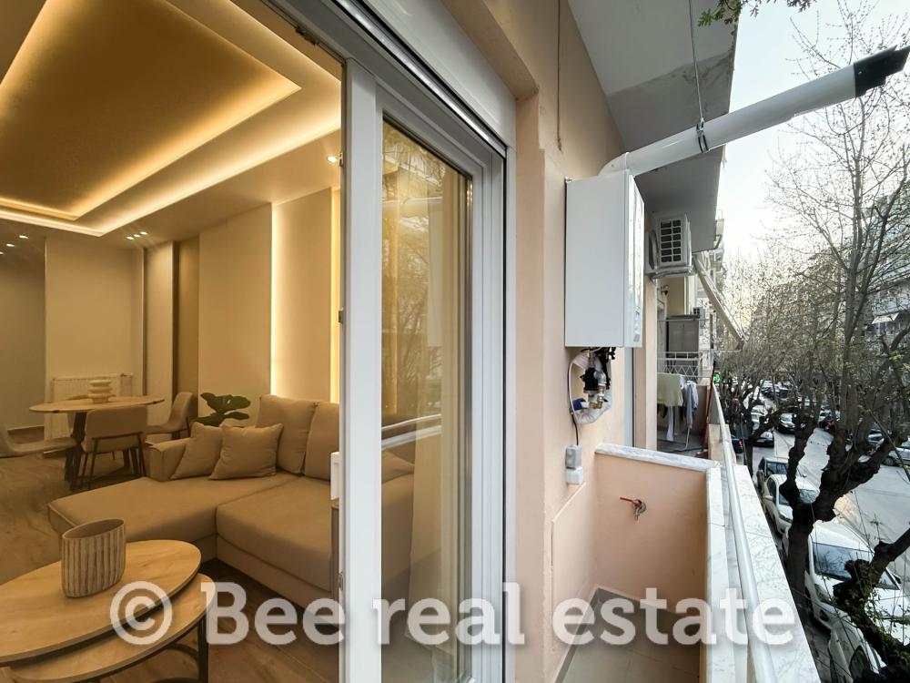 FOR SALE in the ROTONDAS area: a luxuriously renovated, bright, and through-apartment facing the street, located at the intersection of Armenopoulou & Arrianou Streets, on the high 1st floor, with a total area of 70 sq.m. The property is delivered fully equipped and furnished.