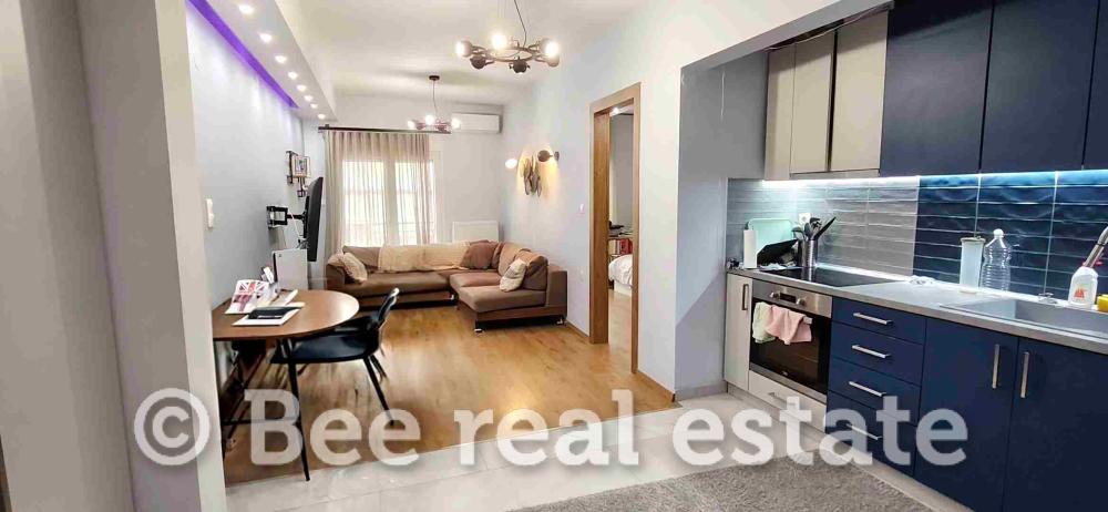 До Василисис Олгас и Мартиу, на пет минути от плажа на Солун и близо до градския транспорт, има тристаен апартамент на втория етаж в сграда с асансьор от 1974 г.