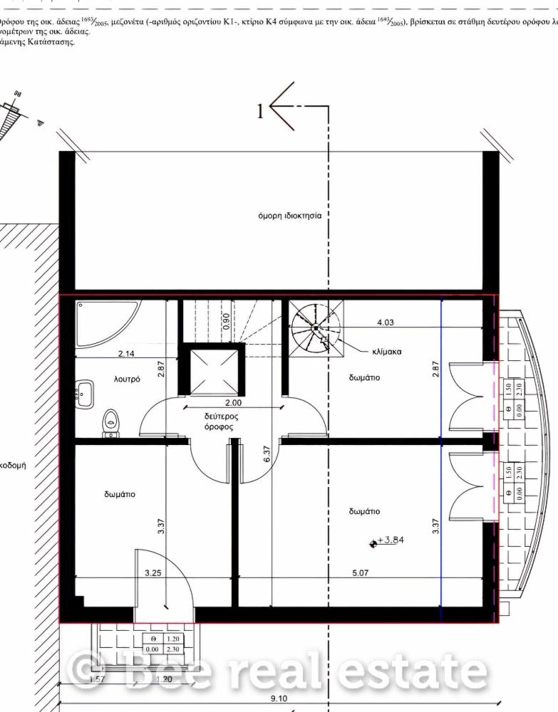 Διαθέτει μπαλκόνια 10 τ.μ. καθώς και εξώστη στη σοφίτα με θέα προς τη θάλασσα.