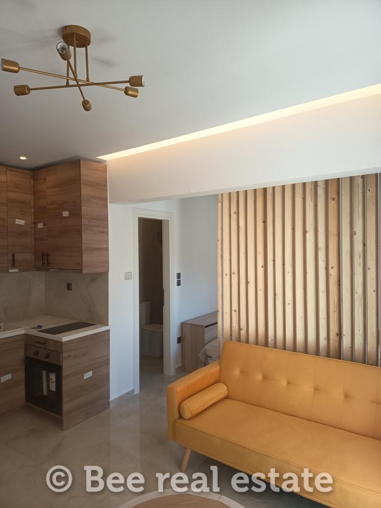 TILL SALU HELT RENOVERAT och lyxigt MÖBLERAD - UTRUSTAD bekväm INTERIÖR STUDIO - STUDIO 38 kvm. med ett ENKEL stort utrymme (separat sovrumsutrymme, vardagsrum-kök), badrum och balkong på baksidan, i området ALYSIDAS med AL. PAPANASTASIOU.